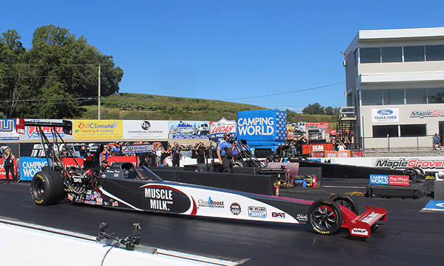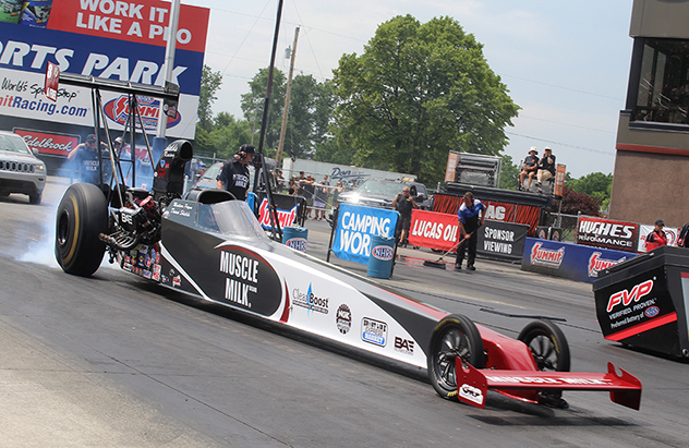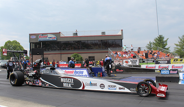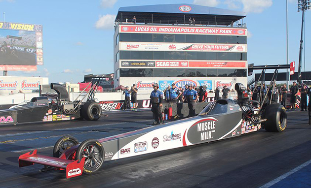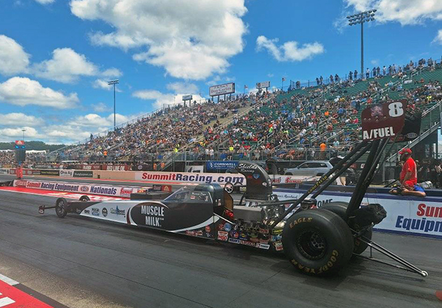 Norwalk Ohio - Madison Payne, driver of the Muscle Milk A/Fuel Dragster went all the way to the semifinals at the Summit Racing Equipment NHRA Nationals. Madison qualified third with an exceptional 5.206 at 276 MPH. In fact, the top three qualifiers all hit the 5.20 mark!