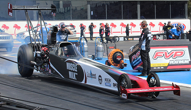 Los Angeles - The NHRA Winternationals lived up to its name despite the race being scheduled in early spring. Even with the sometimes wild and wet weather in the later half of the weekend, the Top Alcohol teams got in two qualifying runs on a mostly sunny day on Friday. Madison Payne qualified the Muscle Milk A/Fuel Dragster in the no. 7 position with a 5.37 at 274 MPH.