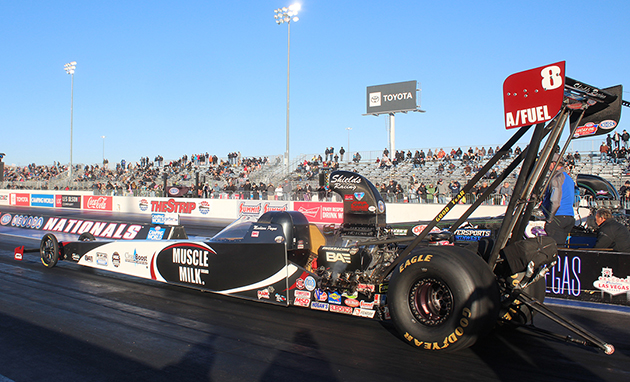 Las Vegas - As Duane Shields' transporter rolls into the Strip at the Las Vegas Motor Speedway and the team begins to unload the Muscle Milk A/Fuel Dragster, Duane will have good reason to pause and look back on a great driving career. After winning 23 national events and a whole host of regional and divisional events in the Top Alcohol Dragster class, this weekend marks the last time Duane will be at the controls of his A/Fueler at an NHRA national event.